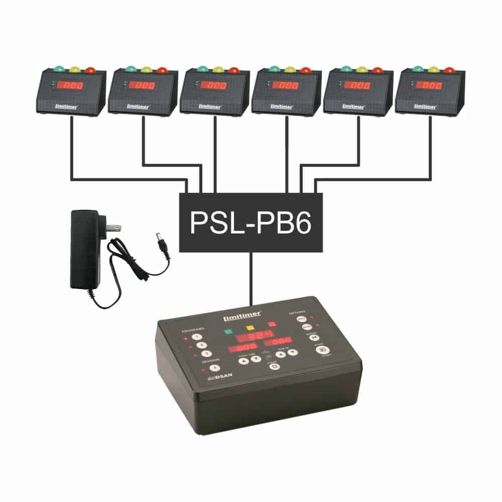 6-Port power distributor to connect additional signal lights to one Limitimer timer console.  Includes 4-amp power supply.